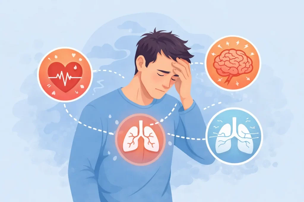 - Palpitaciones y tensión física