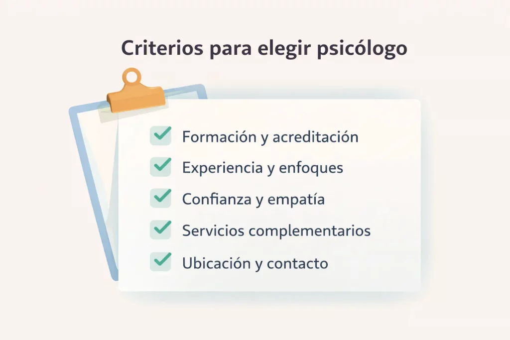 Uno de los primeros aspectos que siempre recomiendo valorar es la formación universitaria en Psicología y la colegiación oficial en España. Esto garantiza que el profesional cumple con los requisitos legales y éticos para ejercer.